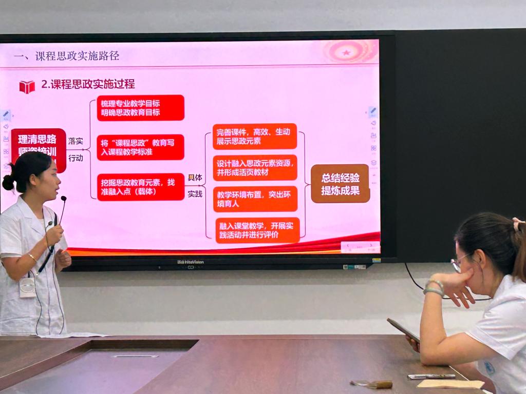 随后,秦道静老师分享了其参加暑期国培项目的收获与思考。他重点介绍了如何将课程思政有机融入专业教学的全过程,实现知识传授、能力培养与价值引领的协同并进。此外,他还就人工智能(AI)技术在现代医学教育中的应用前景、实践案例及潜在挑战与在场教师进行了交流探讨,为创新教学模式、提升课堂吸引力提供了新思路、新方法。