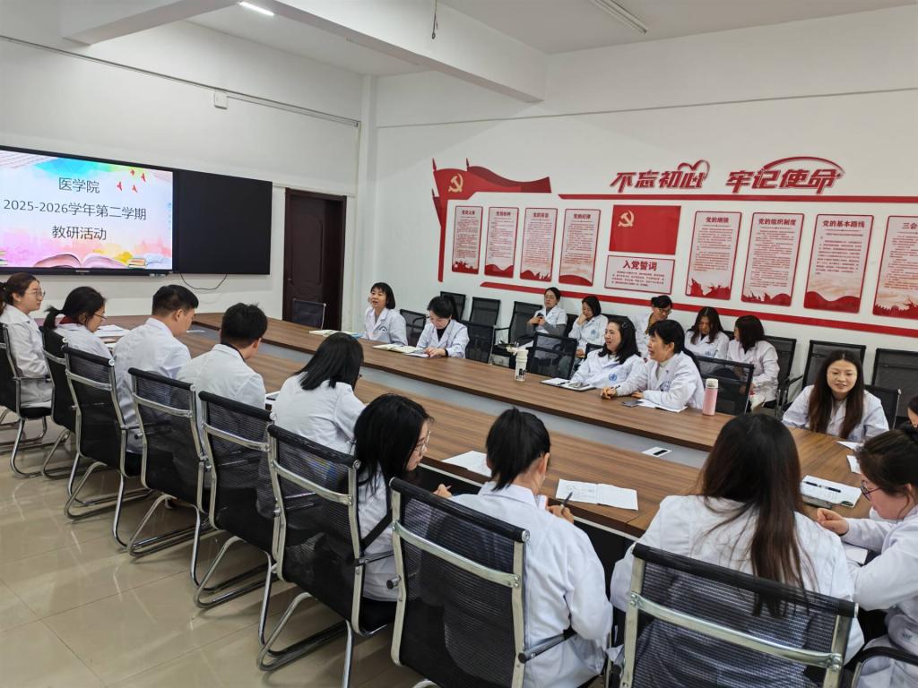 为持续深化教育教学改革,提升教师教学能力与专业素养,夯实人才培养质量,2026年4月8日医学院临床医学教研室在云桂楼 4411 教室开展2025-2026学年第二学期第三次教研活动,本次活动以“进修分享、课标研讨与集体备课”为主题,教研室全体教师参会。
