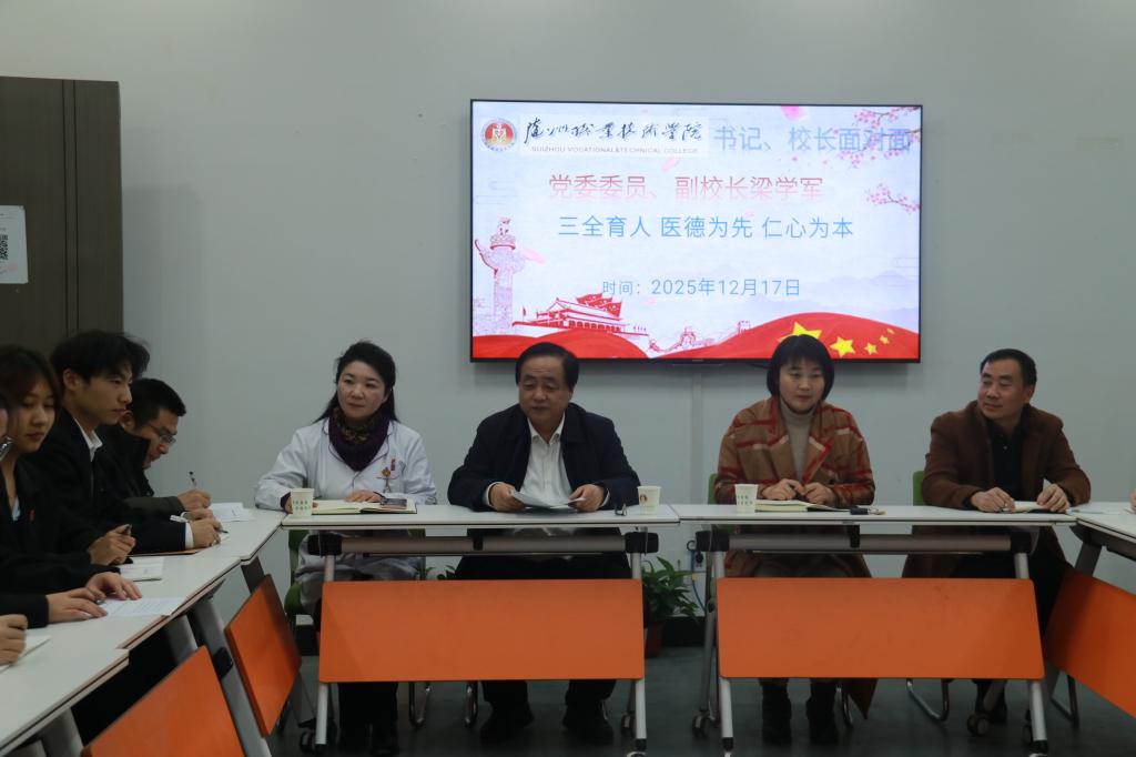 座谈会上,梁校长充分肯定医学院临床医学专业学生代表队在2025年国家级技能比赛中突出表现;看到同学们积极向上的精神风貌,对医学院杏林社区的学生工作进行了大力表扬。