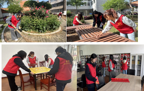 4月24日上午,医学院“陌上花开”志愿服务队走进随州市曾都区老年大学,开展以“普及中医养生知识,护航老年幸福生活”为主题的志愿服务活动,用青春力量为老年群体送去关怀与温暖。 志愿者们早早来到老年大学,兵分两路开展服务。一部分志愿者拿起扫帚、夹子等工具,对校区绿化带进行全面清理,仔细捡拾落叶、纸屑等垃圾,不放过任何卫生死角;另一部分志愿者则走进阅读室,将散落的书籍按类别整理上架,把桌椅摆放得整齐有序,为老人们营造了干净整洁的学习、活动环境。