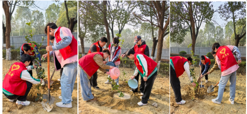 3月12日,医学院团总支书记朱春丽带领“陌上花开”志愿服务队,在学校体育馆门前开展植树活动,以实际行动践行绿色发展理念,美化校园环境。
